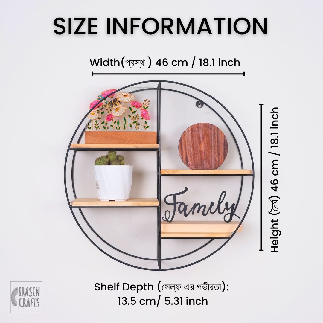 শেল্ফ: ৪টি ছোট শেল্ফ গোলাকার ফ্রেমের ভেতরে সাজানো